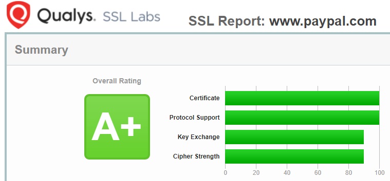最后,给大家看看得分为A+的第三方支付网站PayPal网站的体检结果截图(得分A+)和得分为F的贝壳网站的体检结果截图。笔者需要在这里特别声明的是:笔者不是故意要公开披露某个网站部署SSL证书存在的安全漏洞,这些漏洞说和不说都是摆在所有人(包括攻击者)的面前,任何人都可以使用各种安全扫描工具包括笔者使用的Qualys SSL体检系统来发现这些安全漏洞。