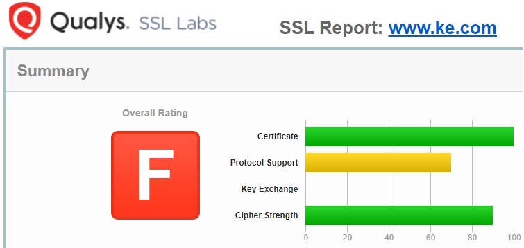 今天,笔者再给第三方支付服务提供商官网、电商官网的SSL证书部署情况做了一次安全体检,仍然是使用 Qualys SSL 体检从SSL证书、协议支持、密钥交换和加密套件强度等4个维度来检测,体检结果也不容乐观,希望相关公司能高度重视这些安全问题,因为部署SSL证书是必须的,但是正确部署也非常重要。