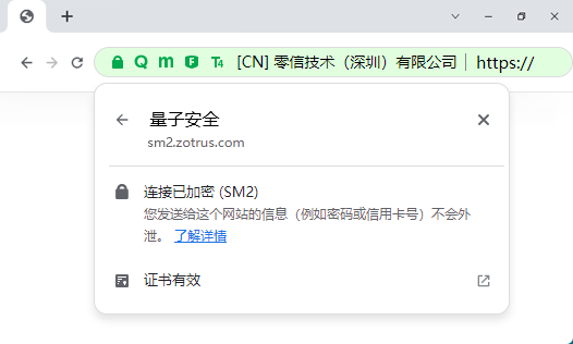 https网站是加密传输,从浏览器到服务器之间的传输的信息是密文,防止非法侦听、非法窃取和非法篡改!绿色地址栏展示网站可信身份。零信浏览器优先采用商密SM2算法,实现https安全连接。