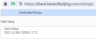 As shown in the left picture below, this is ZT Browser displaying the Bank of Beijing personal online banking page before the upgrade, displaying the green padlock, green SM2 encryption icon and the green T3 trust level icon on the light green address bar. The picture on the right is the new UI after the upgrade, this is nothing to do with the version 114 upgrade, but it has to do with the change of the UI display rules in this upgrade. This website that normally displays the website identity validation level as "T3" has changed to display as "T1". This is not because the ZT Browser made a mistake, but because the SSL certificate deployed by this website does not have the correct certificate type OID. This article will talk about the certificate type OID in detail.