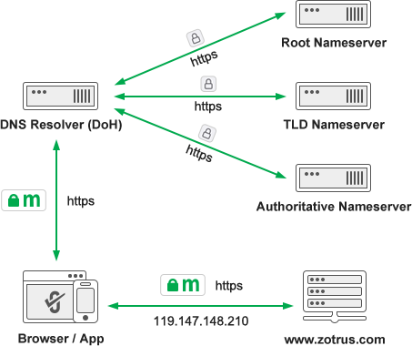 ZoTrus Technology provides HTTPS automation solutions, and encrypted DNS is the beginning of HTTPS Internet access, only by first realizing DNS encryption, coupled with HTTPS encryption, can we truly realize the full encryption security of users' Internet access, and truly protect user data security and ensure Internet security. DNS encryption and HTTPS encryption are indispensable, which is why ZoTrus SM2 HTTPS Automation Gateway integrates encrypted DNS services in the recently upgraded version, based on the open source Bind 9 DNS system, to achieve automatic configuration of dual-algorithm SSL certificates for DoH services, and automatically realize SM2 HTTPS encryption and SM2 DNS encryption (SM2 DoH), providing users with one-stop HTTPS encryption and DoH encrypted DNS services. This is one of ZoTrus DNS encryption solutions.