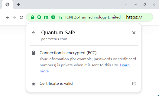 Includes and trust the ECC and SM2 Certificate Transparency Log System, verifies and display whether every SSL certificate embedded trusted signed certificate timestamp, to ensure the security and trust of SSL certificate.