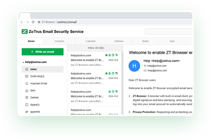 | Comparison of the method | ZT Browser | ZoTrus Email Gateway | Other Email Client | TLS Email Encryption |